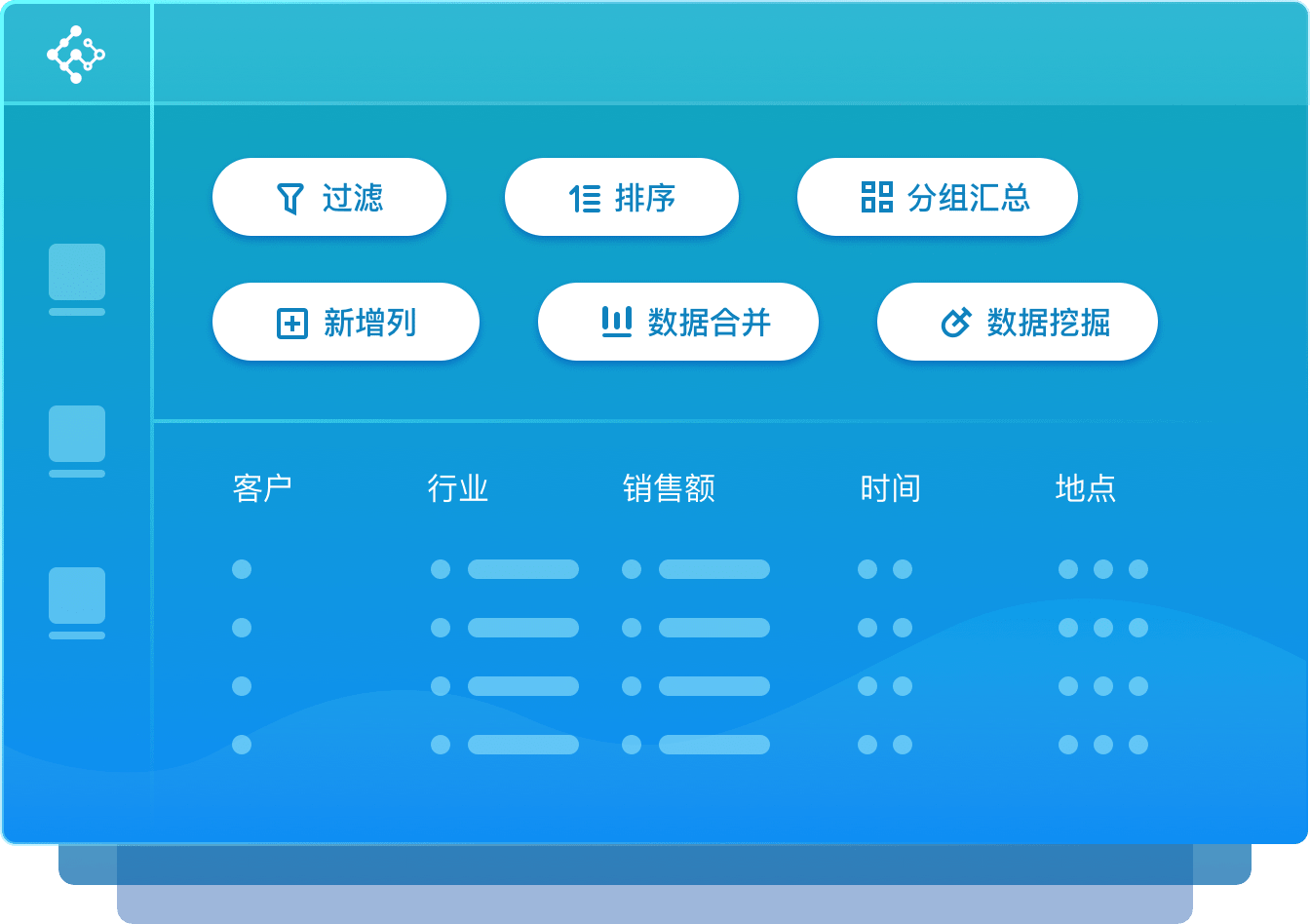 如果需要預測銷售額,對用戶群進行(xíng)智能分類,或是想知道(dào)短(duǎn)信發給哪個(gè)用戶獲得(de)的反饋可(kě)能性更大(dà),都能通(tōng)過簡單拖拽,即時(shí)看到預測或聚類的可(kě)視(shì)化結果。