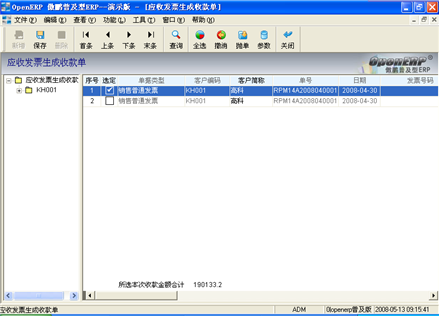 或點擊相應圖标,将選定的應收發票(piào)生(shēng)成收款單