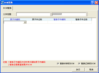 登錄系統後,在左邊的模塊區(qū)中,找到“制(zhì)造管理(lǐ)/ BOM管理(lǐ)/BOM替換”後雙擊它,進入“BOM替換”窗口(見圖7),此文件櫃可(kě)直接将BOM中的子件整批替換,可(kě)以選擇替換已審核或未審核的BOM進行(xíng)替換