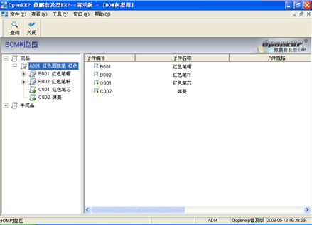 注意:BOM表展開(kāi)是一個(gè)很(hěn)重要的動作(zuò),通(tōng)過展開(kāi)這個(gè)動作(zuò)把單階的BOM表形成層次式,也隻有(yǒu)層次式BOM才能形成産品結構表,才能參與運行(xíng)MRP需求計(jì)算(suàn)、産生(shēng)物控檔等