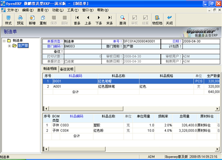 登錄系統後,在左邊的模塊區(qū)中,找到“制(zhì)造管理(lǐ)/制(zhì)造單/制(zhì)造單”後雙擊它,進入“制(zhì)造單”窗口(見圖10),此文件櫃可(kě)以新建制(zhì)造單,也可(kě)對由銷售訂單及MRP結果生(shēng)成的制(zhì)造單進行(xíng)查看、修改,然後将單據送審