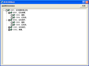對産生(shēng)完的BOM可(kě)能某些(xiē)物料(特别是多(duō)個(gè)替代料的情況)不需要發料,那(nà)可(kě)以點擊菜單項“功能/更改BOM”或點擊相應圖标,出現如圖14的提示框,将不需要發料的物料的“√”去掉後點擊“關閉”按鈕,系統會(huì)将圖12右下窗口的“BOM結構”标簽頁中“發料”欄位值的“√”去掉。