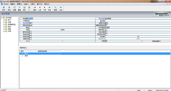 “核算(suàn)項目”标簽頁:輸入核算(suàn)項目類别資料(已做(zuò)過憑證的科目不允許新增核算(suàn)項目)