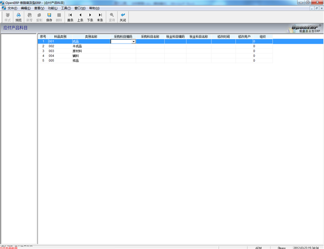 登錄系統後,在左邊的模塊區(qū)中,找到“總賬系統/會(huì)計(jì)接口/生(shēng)成憑證設置/應付産品科目”,進入“應付産品科目”窗口(如圖19),顯示的數(shù)據會(huì)根據3.1.1參數(shù)設置裏應付産品科目依據顯示不同的欄位,當選擇按料品類别就是按料品類别設置科目編碼的,當選按料品就是按料品設置科目編碼的,打開(kāi)時(shí)自動讀取對應的數(shù)據