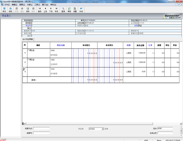 數(shù) 量:憑證中的數(shù)量,如果此會(huì)計(jì)科目屬于數(shù)量核算(suàn)科目,則可(kě)編輯此欄位