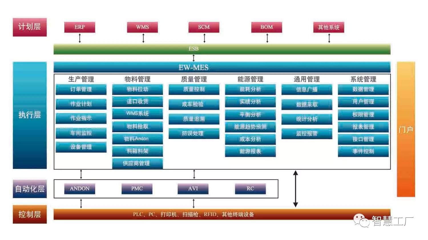 MES即制(zhì)造執行(xíng)系統(manufacturing execution system,簡稱MES)是美國AMR公司(Advanced Manufacturing Research,Inc.)在90年代初提出的,旨在加強MRP計(jì)劃的執行(xíng)功能,把MRP計(jì)劃同車(chē)間(jiān)作(zuò)業現場(chǎng)控制(zhì),通(tōng)過執行(xíng)系統聯系起來(lái)。這裏的現場(chǎng)控制(zhì)包括PLC程控器(qì)、數(shù)據采集器(qì)、條形碼、各種計(jì)量及檢測儀器(qì)、機械手等。MES系統設置了必要的接口,與提供生(shēng)産現場(chǎng)控制(zhì)設施的廠商建立合作(zuò)關系。