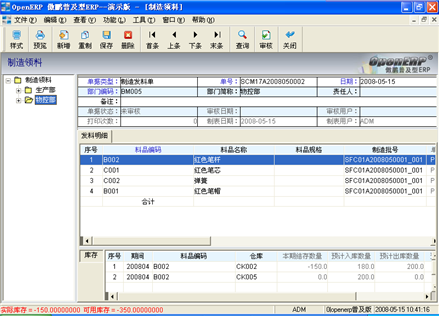 說明(míng):1.“制(zhì)造領料”的數(shù)據來(lái)源是文件櫃“生(shēng)成制(zhì)造領料單”抛轉來(lái)的資料,也可(kě)手工新增單據
