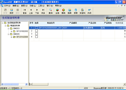 生(shēng)成制(zhì)造領料單 制(zhì)造領料