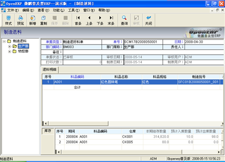 登錄系統後,在左邊的模塊區(qū)中,找到“庫存管理(lǐ)/制(zhì)造領退料/制(zhì)造領料”,進入“制(zhì)造領料”窗口(見圖26),此文件櫃可(kě)以新建制(zhì)造領料單據,也可(kě)對由生(shēng)成制(zhì)造領料單的制(zhì)造領料單進行(xíng)查看、修改,然後将單據審核