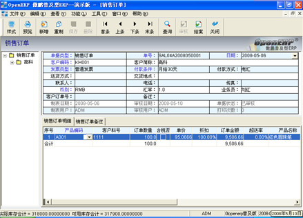 登錄系統後,在左邊的模塊區(qū)中,找到“銷售管理(lǐ)/銷售訂單/銷售訂單”後雙擊它,進入“銷售訂單”窗口(見圖3)文件櫃建立客戶訂單資料,錄入産品的時(shí)候,系統自動在提示框中顯示該産品目前的庫存信息,供參考